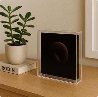 Você envia o áudio, nosso algoritmo captura as ondas sonoras e gera uma imagem única, transformando o som em uma obra de arte que eterniza aquela pessoa especial.